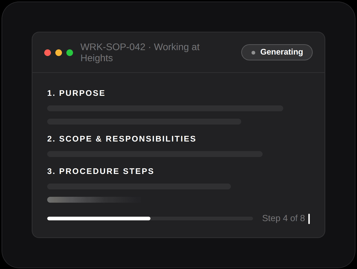 Generates fully compliant SOPs, policies, and corrective action plans aligned to your industry and standards.